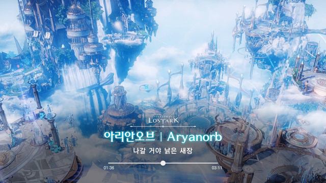 ■ Music Credits *Game: 로스트아크(LOST ARK) *Title : 아리안오브(Aryanorb) *Vocals : 유다연(Yu Dayeon) *Chorus : 브릴란떼 어린이 합창단 *Writer : 금강선 *Composer : 백정은 ■ Lyrics 눈뜨지 말아요 마음으로 그려 접힌 날개를 다시 펼쳐봐요 비가 내리는 날엔 우산을 펼쳐 놓고 새벽 빗소리에 내 맘을 열어봐요 날고 싶어 나도 날고 싶어 푸르른 미래를 이어 나갈 거야 낡은 새장 잠들지 말아요 비가 그쳐와요 멋진 날개를 맘껏 펼쳐봐요 무지개 너머로 자 이제 날아봐요 함께여서 아름다워 우리의 마음을 이어 네가 있어 열린 세상 혼자가 아니니까 *Published by Smilegate RPG All rights reserved.