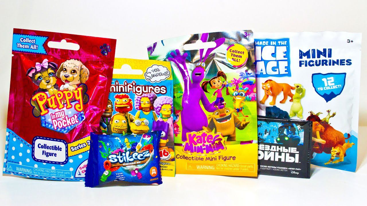 Сюрпризы в Пакетиках Щенок в Моем Кармане Катя и Мим Мим Ледниковый Период Минифигурки Симпсоны