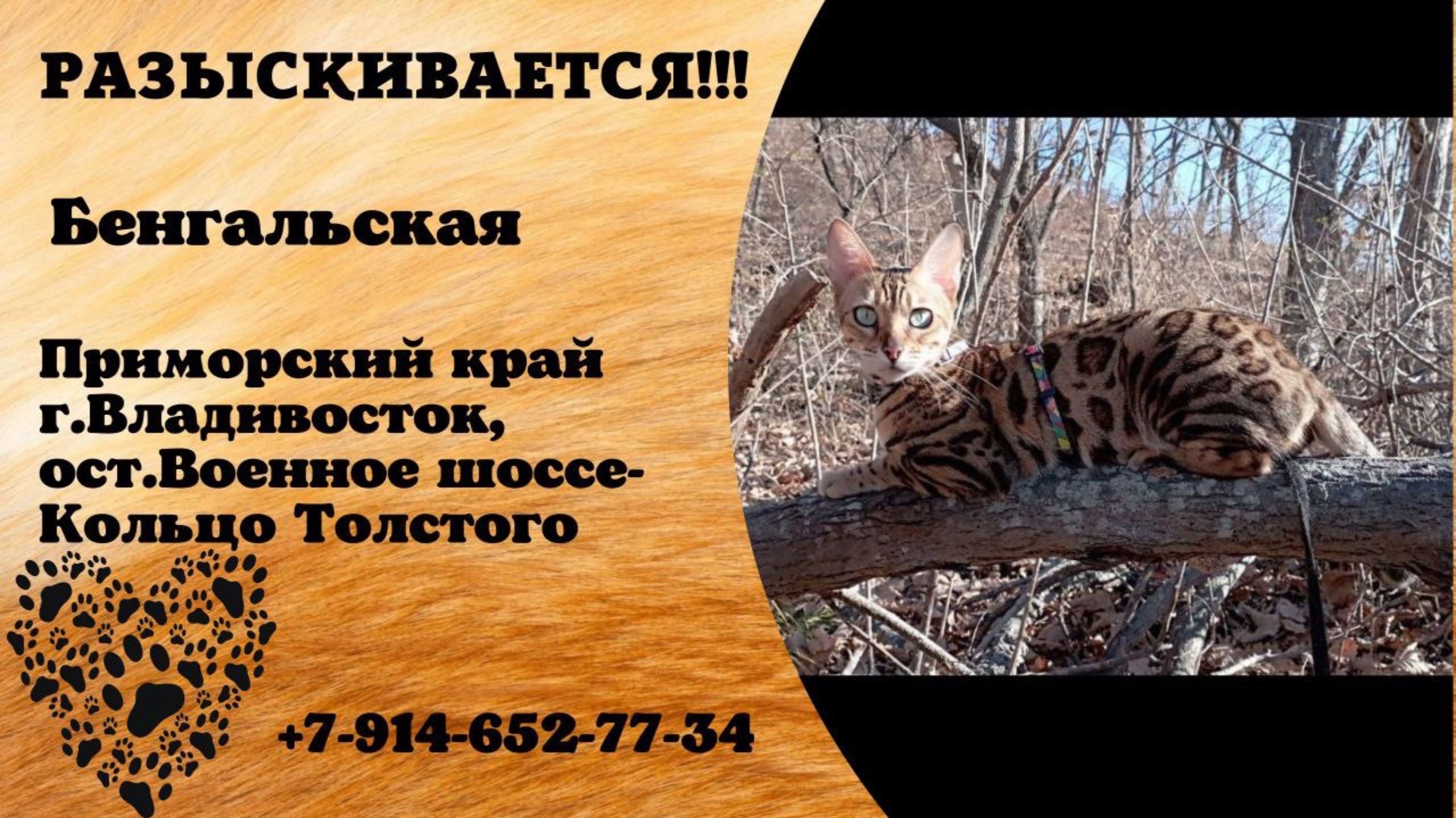 Пропала кошка! Бенгальская. Приморский край, г.Владивосток.