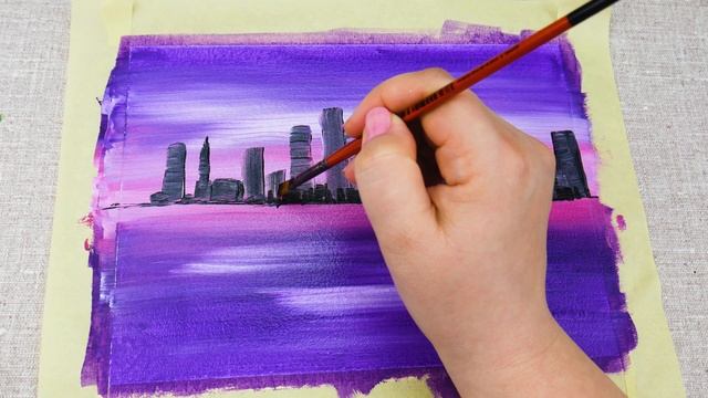 Городской пейзаж! Простая акриловая покраска! Быстро и легко