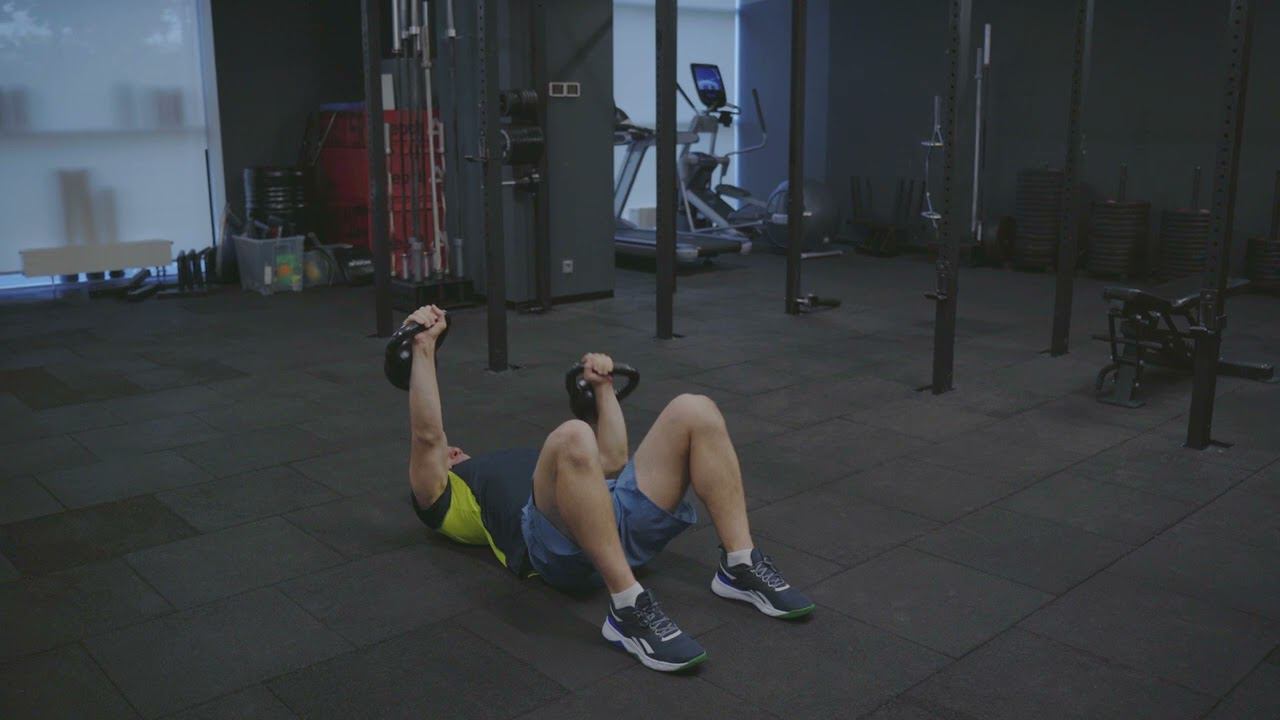 Жим гири лежа на полу с удержанием