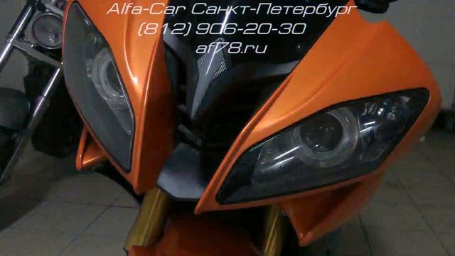Тюнинг Yamaha R6 в студии ALFA-CAR биксеноновые линзы + ангельские глазки (GD-RGB)
