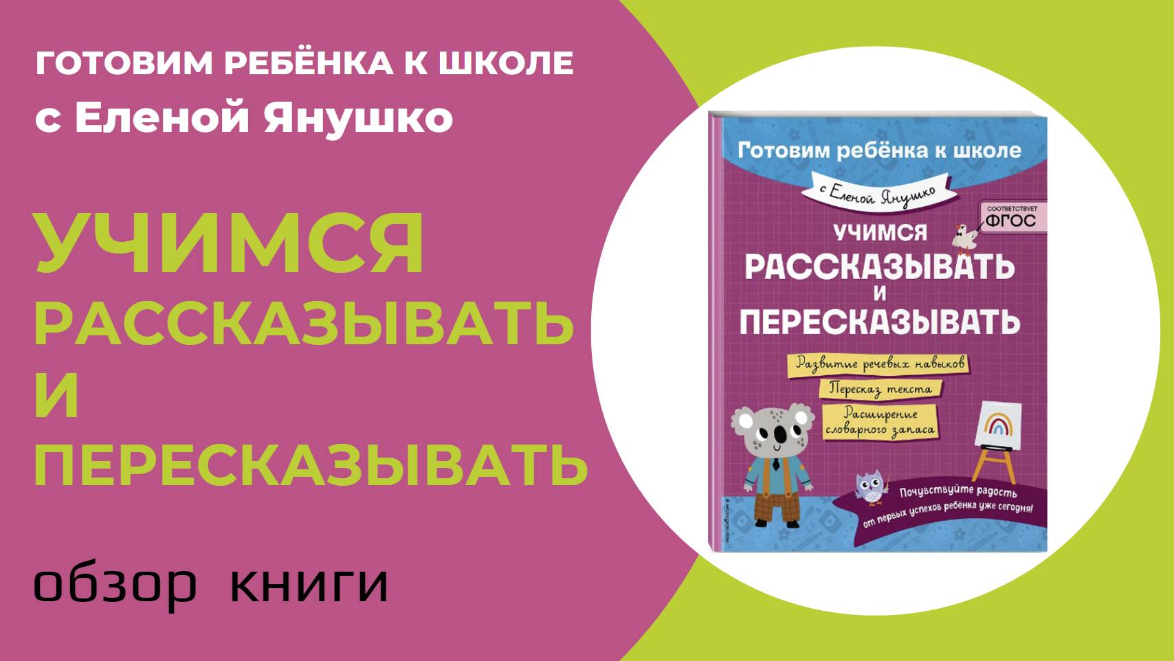 УЧИМСЯ РАССКАЗЫВАТЬ И ПЕРЕСКАЗЫВАТЬ серия "Готовим ребёнка к школе с Еленой Янушко": обзор книги