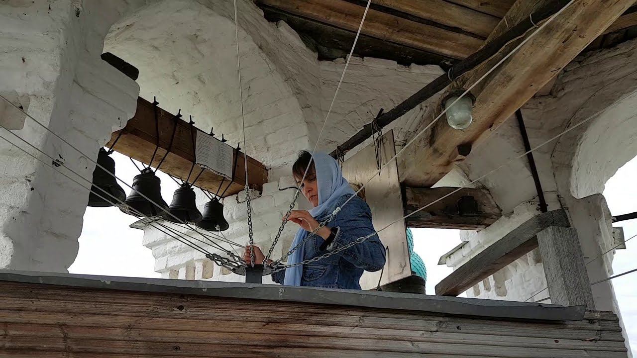 Звонарь Светлана Беркутова исполняет колокольный звон на колокольне Воскресенского собора Тутаева 28.07.2019. Звон во время Крестного хода с иконой Всемилостивого Спаса в период проведения фестиваля колокольного звона "Перед Спасом". #колокольныйзвон #звонзвоны