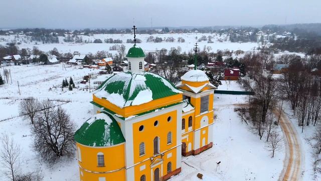 На берегу величавой Протвы, словно оживший сон детства, возвышается она — церковь Успения Пресвятой Богородицы. Её стены, ярко-жёлтые, словно солнечные лучи, пронзают серость зимнего дня, даря надежду и тепло. Снег, словно лёгкая дымка, окутывает её купола, добавляя таинственности и сказочности. Пасмурное небо над головой кажется тяжёлым, но под его тяжестью храм стоит непоколебимо, как символ веры и стойкости. Каждый уголок этого места дышит историей, а тишина вокруг лишь подчёркивает его величие. Церковь Успения Пресвятой Богородицы в Набережной Слободе д. Набережная Слобода, 48 55.246018, 36.185514