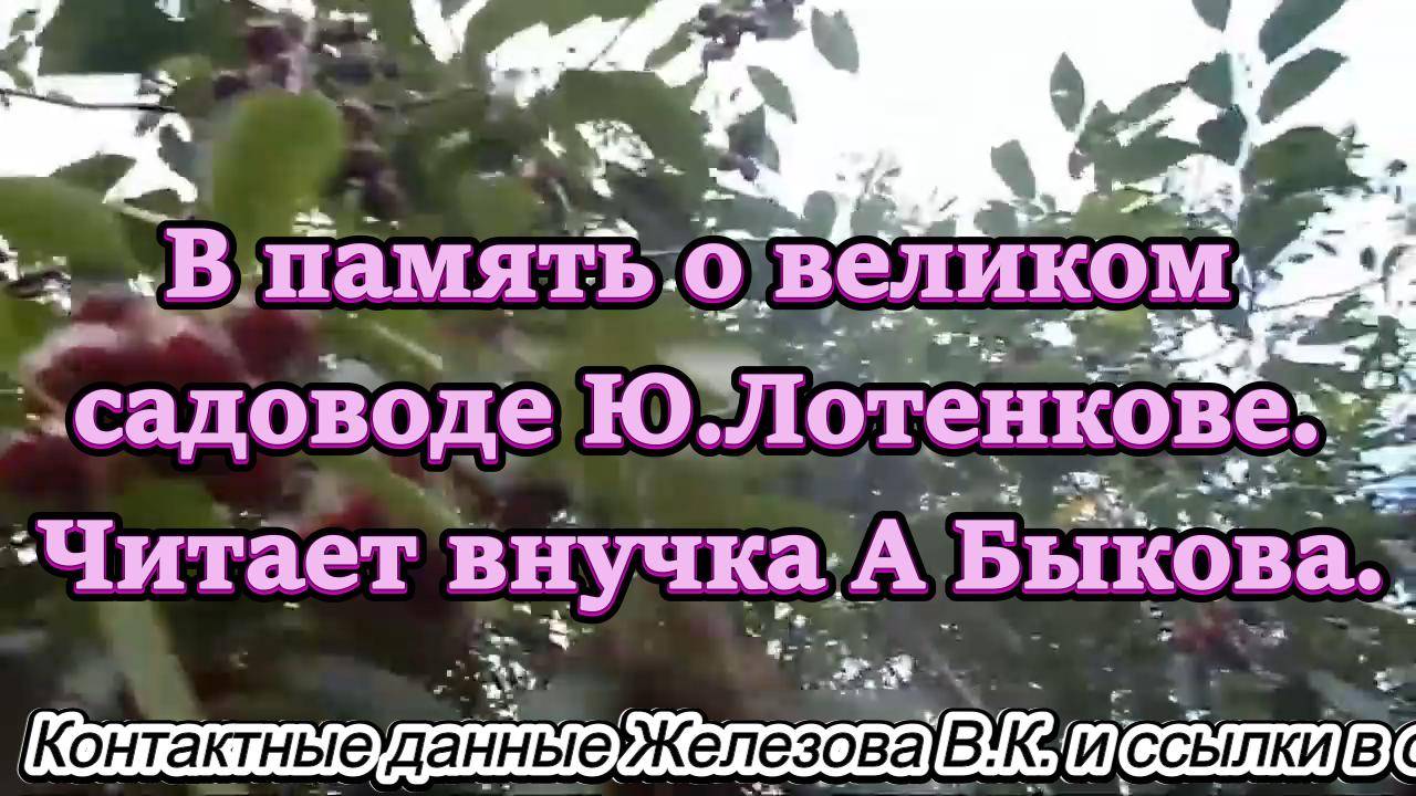 В память о великом садоводе Ю.Лотенкове. Читает внучка А Быкова.
