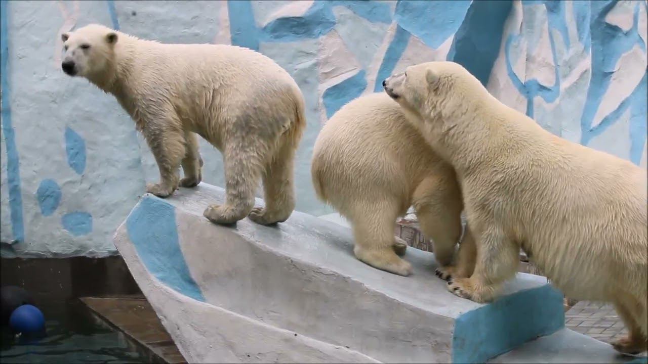 Герда родилась в Москве 20 ноября 2007 года. Её мама Симона, папа Врангель. В Новосибирск переехала 05.08.2008. В 2013 году у Герды и Кая родилась Шилка. В 2015 году она переехала в Японию. В 2015 году родился Ростик. 6 декабря 2018 года он переехал в Китай. В 2018 году родились Норди и Шайна. Данная пара молодых медведей находилась вне экспозиции зоопарка, поэтому посетители не могли их видеть. Передача молодых медведей в другой зоопарк не планируется, — ответили на запрос редакции в пресс-центре мэрии Новосибирска. Но Шайна 20 января 2024 года переехала в Ижевский зоопарк. Белые медведи одиночные животные. Как правило, миролюбивы по отношению друг к другу, но между самцами в брачный период случаются стычки. Взрослые самцы могут нападать на медвежат. Гон с марта по июнь. Продолжительность жизни — максимум 25—30 лет; в неволе рекорд долгожительства — 42 года. Вес очень крупных самцов в некоторых частях ареала 700 и даже 800 кг: есть данные о зверях весом до 1000 кг. Обычно вес меньше. Самки всегда не только меньше, но и значительно легче самцов. Так, самцы в восточной Гренландии в состоянии нормальной упитанности весят 400—450 кг, хорошо упитанные — до 500 кг, самки, даже очень сытые, здесь же редко весят больше 350—380 кг, т. е. их вес составляет около 75% веса самцов. Длина тела на 3-й день после рождения 28—32 см, средний вес — около 755 г (650—840 г). На 26-й день длина тела увеличивается незначительно — до 35—38 см, а вес возрастает до 1125—1275 г. В возрасте 60 дней самцы весят около 7 кг, самки — около 6 кг при длине тела у первых 58—60 см, у вторых 54—58 см. В возрасте 4 месяца медвежата достигают веса 22—23 кг, в 6-месячном возрасте при длине около 110 см — 40—43 кг, в 8-месячном — 58—62 кг. Длина тела в возрасте с 6 до 9 месяцев нарастает по 6—7 см в месяц. Во время зимнего сна рост почти прекращается. В зоопарке медведей кормят утром морской рыбой, хлеб с рыбьим жиром внутри, морковь, яблоки, морская капуста, яйцо дают сырое. Медвежат подкармливают молоком из соски. На ужин мясо (говядина, конина, куры или индейка). Летом и осенью арбузы, дыни, ранетки, кабачки, тыквы, огурцы. Когда показательное кормление летом бросают живую рыбу. Медвежата с медведицей находятся до 2-х лет. 16 декабря 2022 года Герда родила 2-х медвежат. И это две девочки! Имена дали 25 июня. Медвежат зовут Стрелка и Белка. Обзор вольеров белых медведей https://www.youtube.com/watch?v=mAt_b7JD0B4&list=PLGvf0V-rAHxkpGKJaWIZIUxRKgKiqV3xZ&index=17&t=0s