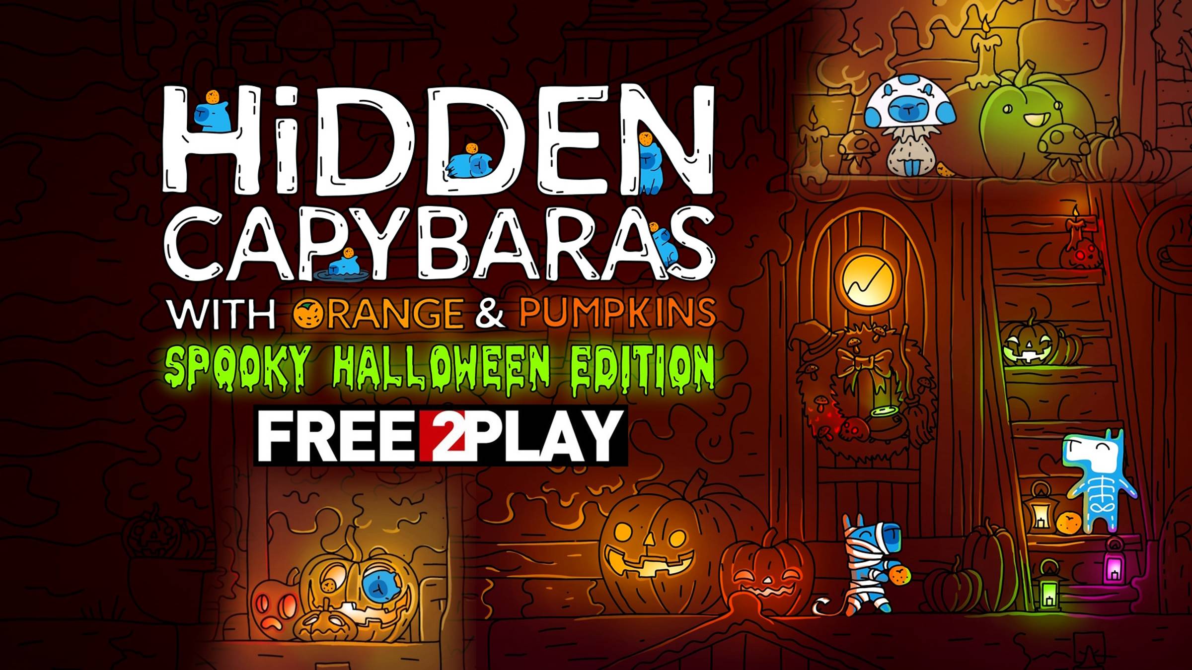 Игра в стиме Бесплатна https://store.steampowered.com/app/2885610/Hidden_Capybaras_with_Orange_and_Pumpkins_Spooky_Halloween_Edition/