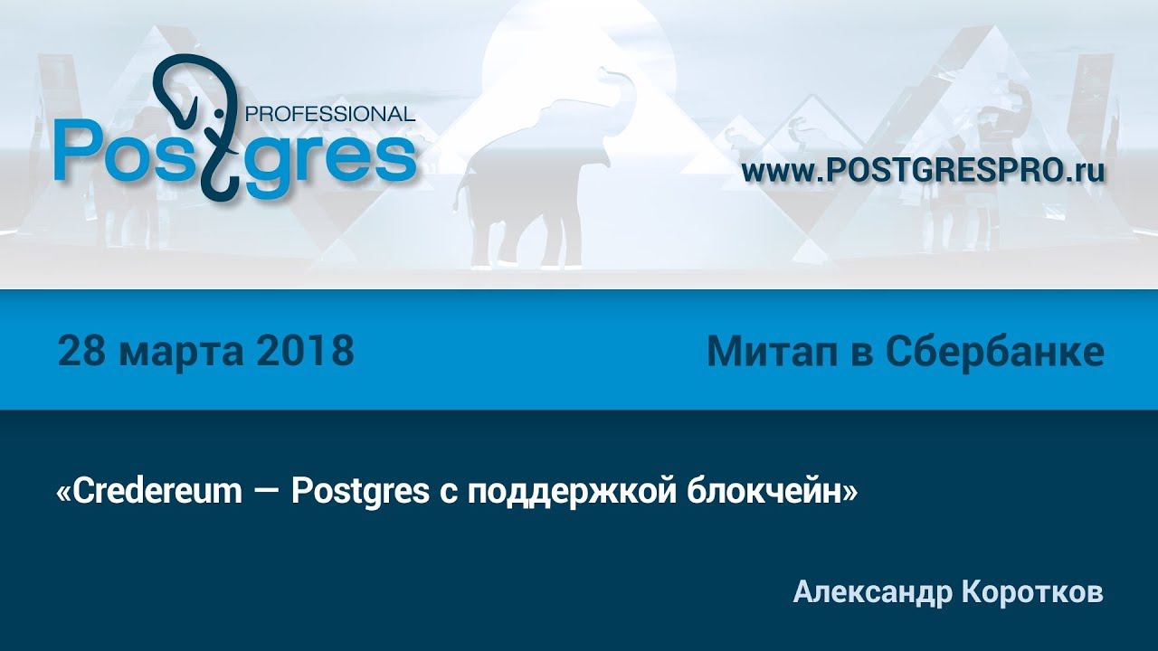 20180328 «Credereum — Postgres с поддержкой блокчейн». Митап в Сбербанке Спикер: Александр Коротков