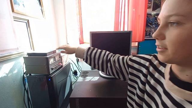 Самира показывает оборудование для связи с космонавтами