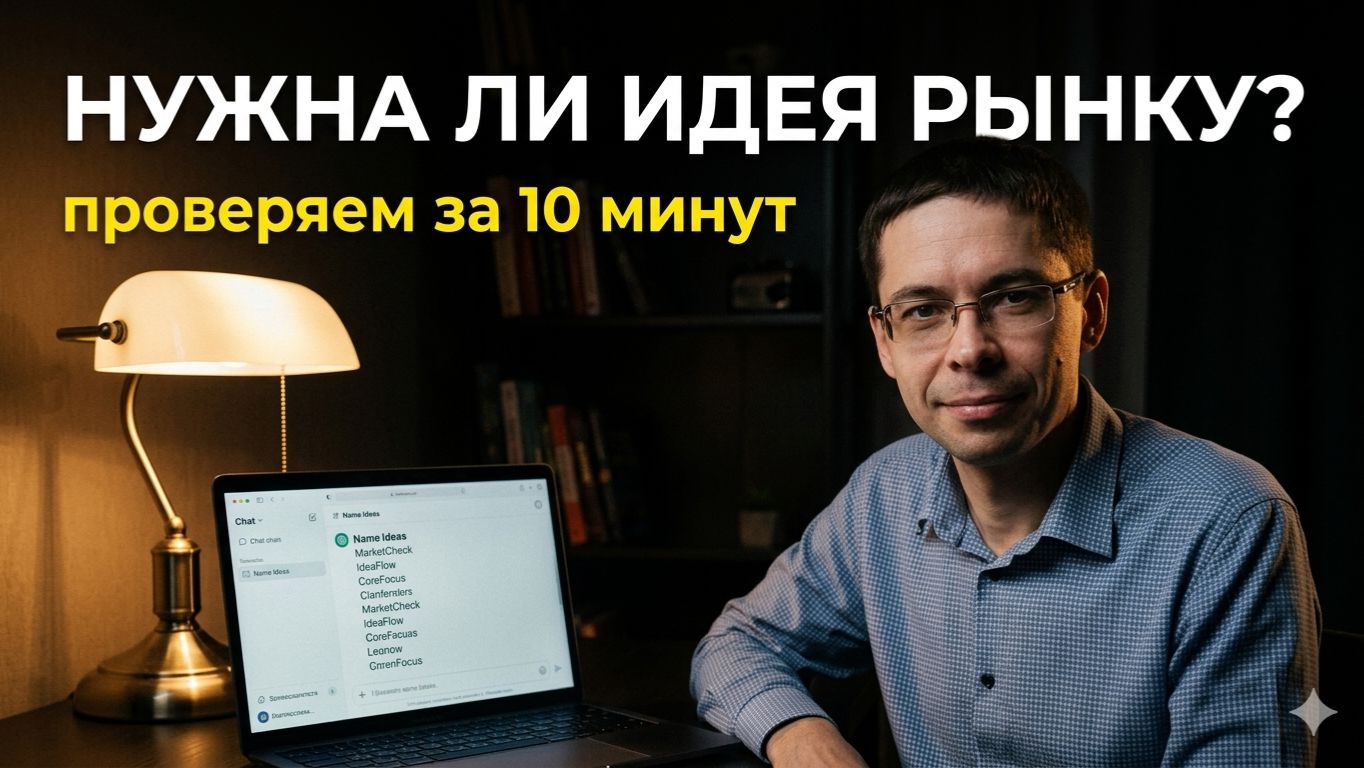 Продолжаем создавать AI-сервис с нуля. В этом уроке разбираемся, нужна ли вообще наша идея рынку — и придумываем название. В этом уроке: — Как за 10 минут проверить идею через ChatGPT без маркетингового образования — Кто реально будет платить за сервис (и кто — нет) — Есть ли конкуренты и в чём наше преимущество — Как ChatGPT придумывает название — и почему первые 10 вариантов обычно так себе — Первый логотип: с нуля до готового изображения прямо в чате 🔗 Сервис, который создаём: https://kakotvetit.ru --- 📌 Это второй урок бесплатного курса по вайб-кодингу. Смотри все уроки по порядку в плейлисте — ссылка выше. Не нужно быть программистом, маркетологом или иметь стартовый капитал. Нужны: компьютер, интернет, любая нейросеть. --- Константин Умнов — создаю AI-сервисы в формате вайб-кодинга. Мои проекты: gpttext.ru | filegpt.ru | kakotvetit.ru