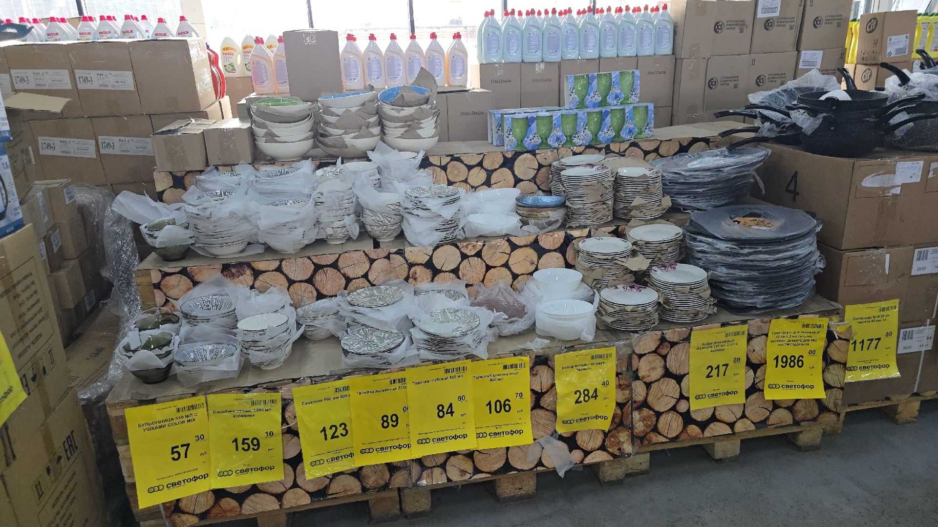 Удивлена этому ассортименту Светофора! Много посуды и бюджетных товаров для дома. Холодильник забит