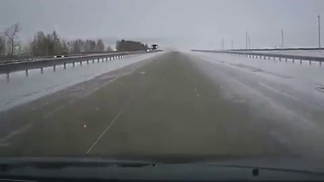 Встречная машина залепила всё лобовое стекло снегом