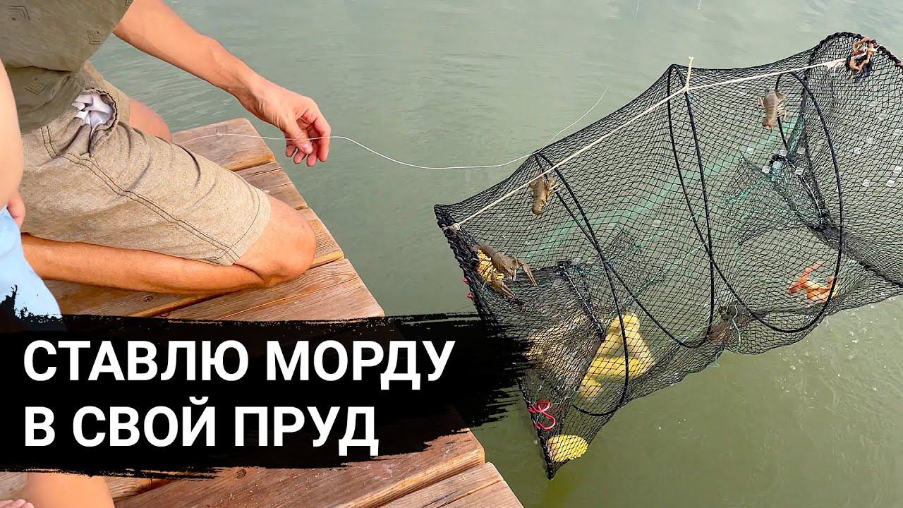 Они ЖИВЫ! РЫБАЛКА на МОРДУ в своём пруду (1,5 года), куча рака и линя, разведение раков