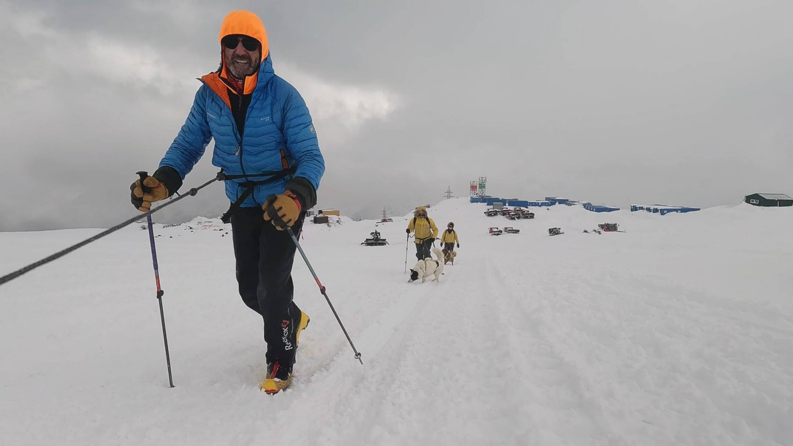 Руководитель экспедиции «Super Dogs на Эльбрусе» Александр Абрамов передаёт из Приэльбрусья: Сегодня команда Клуба 7 Вершин Super Dogs поднялась на наш Приют («Национальный парк») на склоне Эльбруса на высоту 3800 метров. Всё завалено снегом. Откапывали вагончики. Собаки максимально привлекали внимание на канатке. Расположились в приюте. Мы в домиках, наши чукотские ездовые на снегу. Все с комфортом. Сегодня делаем пробный выход с собаками до Приюта 11. Собаки сразу начали тянуть в верх, так, как они бегают в упряжке по снегу. Скорость реально в 2 раза выше, чем без собак. По снегу тянут еще лучше, чем вчера по камням на Чегете. И меньше отвлекаются. Пока эксперимент проходит отлично. Завтра попробуем сходить на Скалы Пастухова. Погода, честно говоря, плохая. Пурга. Но собакам она привычна. Зимой на Чукотке они таскают сани и спят на улице при -50 градусов. Так что на Эльбрусе им прям очень хорошо. Как на курорте. Но они идут на гору не одни…