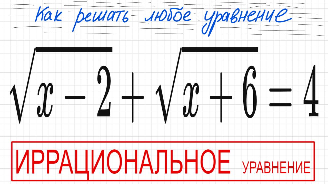 №6 Иррациональное уравнение (с корнями) √(х-2)+√(х+6)=4 Как решать уравнение с квадратными корнями К