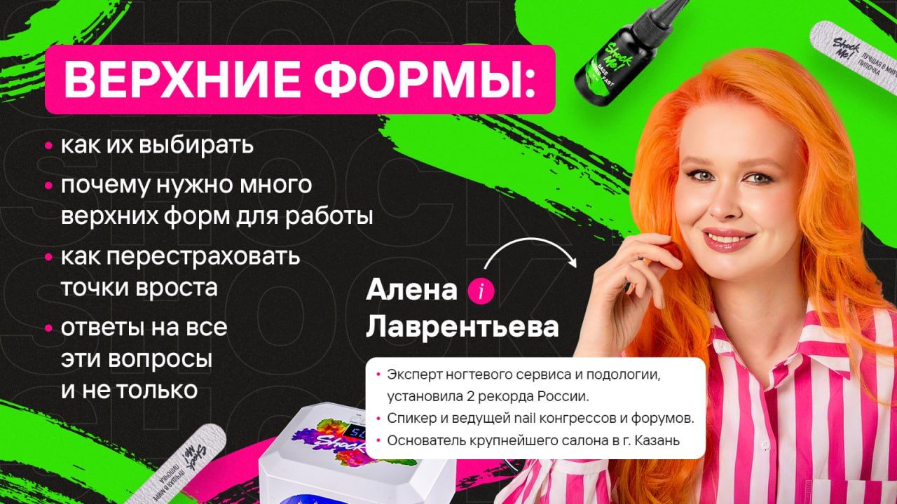 Запись эфира с Алёной Лаврентьевой Материалы в работе, артикулы: 📎ВФ "Классический миндаль Ультра" - 588813959 📎Гель для моделирования 01 - 397683049 📎Пилочки "Луна" 100/180 - 265669488 📎Праймер - 199582692 📎Basa Rubber Soft 12 мл 238885831 30 мл 477234263 60 мл 477234264 📎Лампа - 762077627 📎Top Shine 02 - 648293158 📎Top Glass Miracle - 238887819 📎Масло Монарды 30 мл - 231764524 50 мл - 296252542 📎АРТ-гель - 657586746 Ждем вас в следующую среду 💚 Shock Me! - бренд материалов для маникюра Магазин на ВБ https://www.wildberries.ru/seller/3945594 Больше о наших материалах, инструкции, работы мастеров на телеграм-канале: https://t.me/shockme_nails