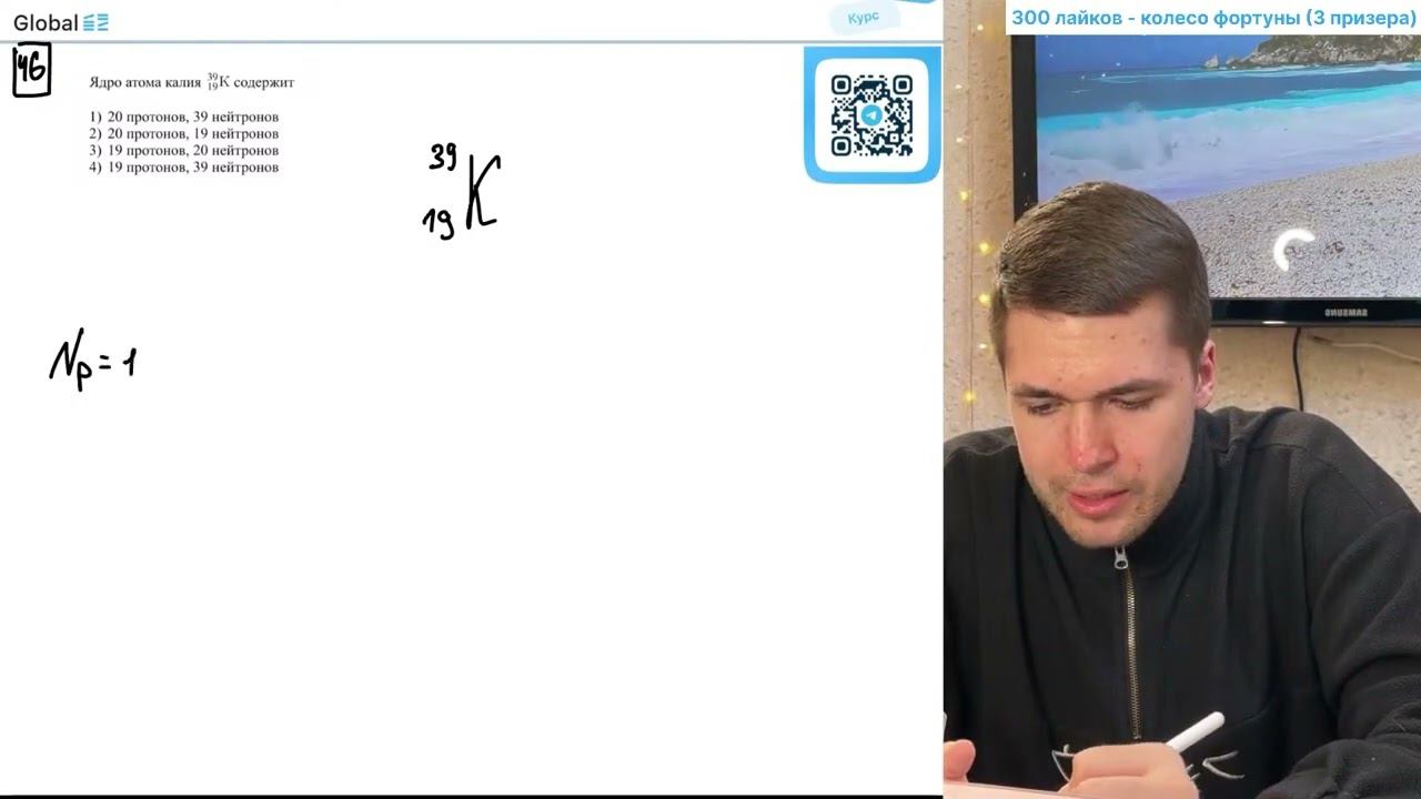 Ядро атома калия 39 19K содержит 1) 20 протонов, 39 нейтронов 2) 20 протонов, 19 нейтронов - №