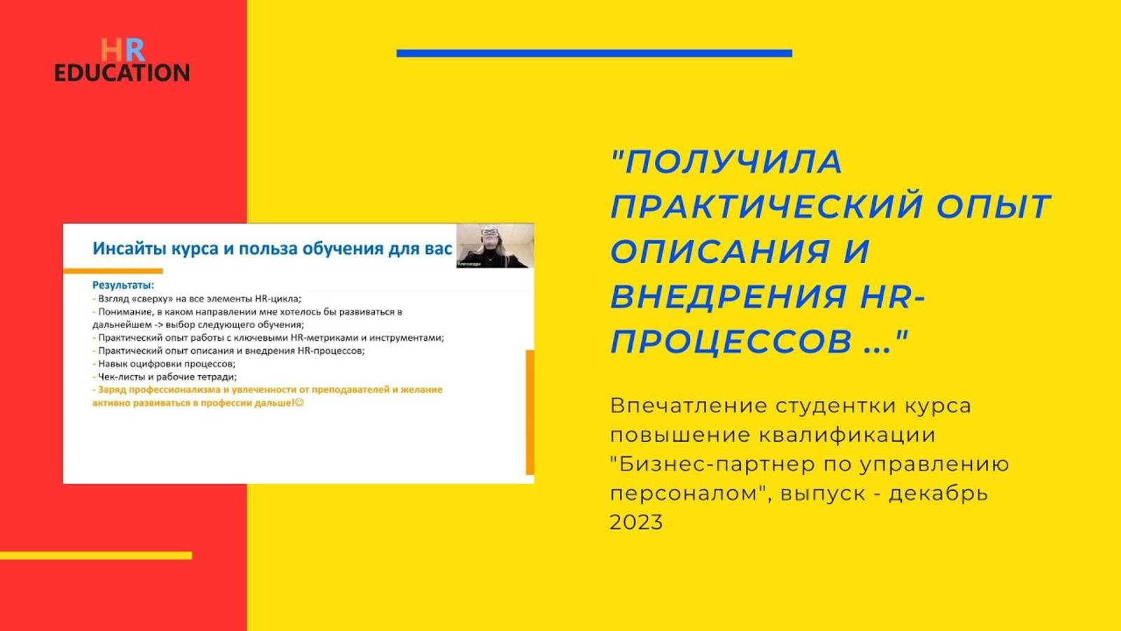 Впечатление Ильиной Александры, студентки курса "HR бизнес-партнер"