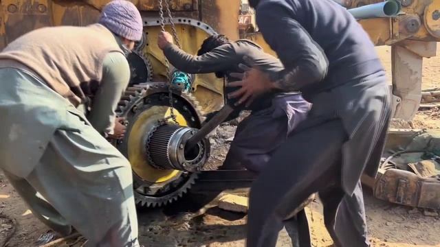 Процесс ремонта тяжёлого бульдозера.