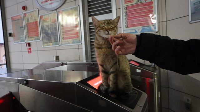 Добро пожаловать в Стамбул, Турция. Этот милый кот очень четко выполняет свою работу на терминале
