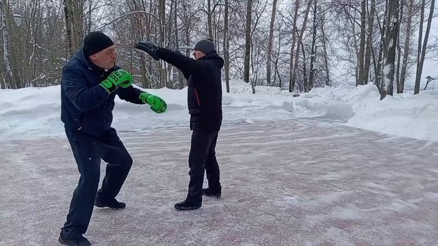 Тренировка по боксу на улице зимой