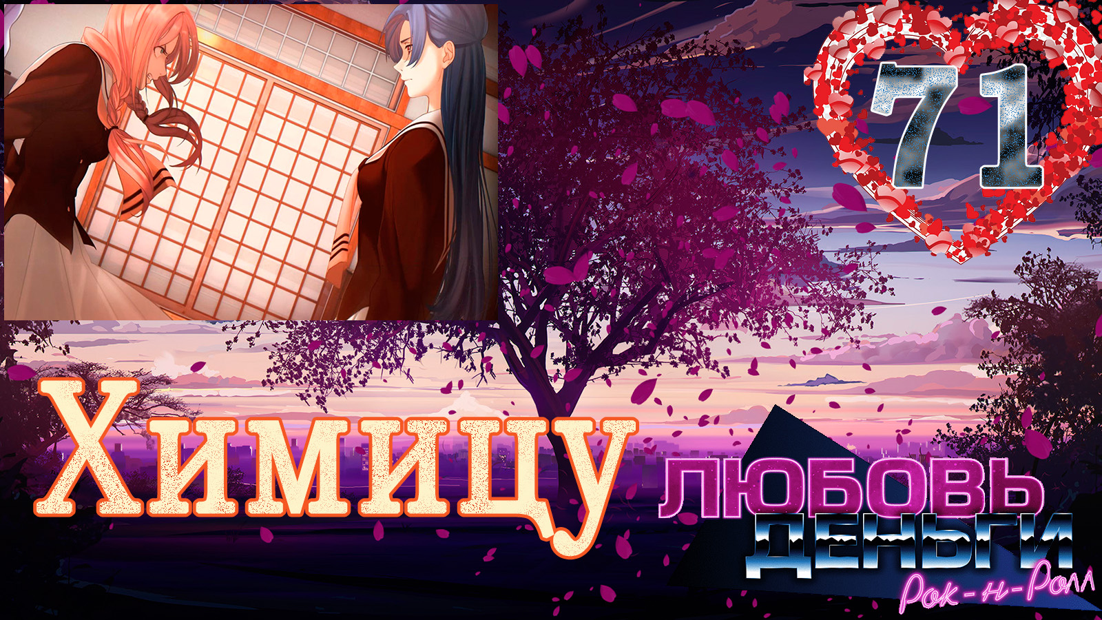 Любовь, Деньги, Рок-н-ролл (ЛМР)/Love, Money, Rock'n'Roll (LMR) - визуальная новелла от создателей Бесконечное лето (БЛ). Отзывы не очень, но лучше самому посмотреть)) а там решим проходить дальше или нет) Приступим) Сюжет: Николай, сын советских эмигрантов и обычный японский школьник, даже не подозревает, что вскоре его мир перевернётся. Привычное и родное столкнётся в нём с мрачными призраками прошлого. Теперь Николай должен решить, кому он может по-настоящему доверять, и выяснить, почему им заинтересовались те, кто обладают властью и деньгами, перед которыми теряют значимость жизни простых людей. Сегодня рут Химицу серия 71 Уйди прочь Хочешь помочь каналу - https://www.donationalerts.com/r/shamaru