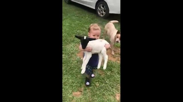 Маленький мальчик несет козленка - 2022 год
