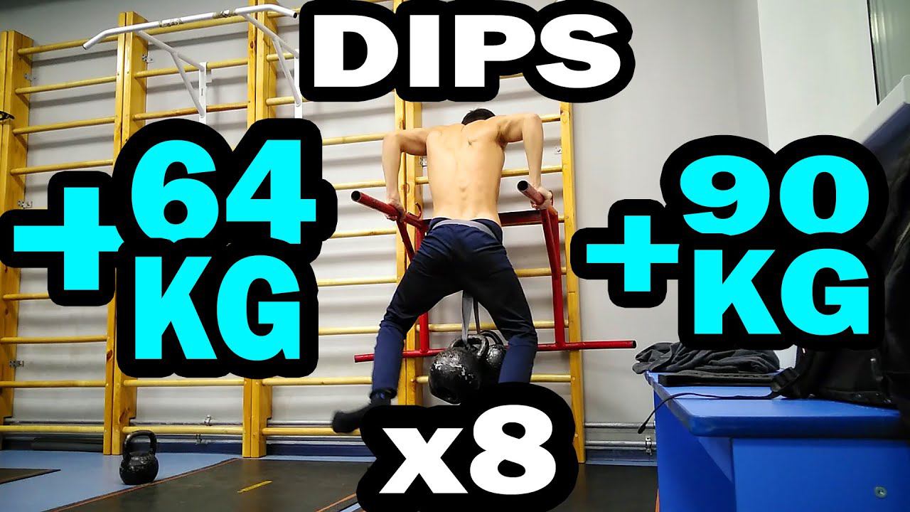 3 ONE ARM PULL UPS +16 KG. Dips +90 kg. Dips +64 kg x8. Pullup +84 kg. Muscle Ups +16 kg x3