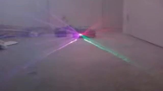RGB Laser Projector 12 feet from camera with lights on, minimal fog.