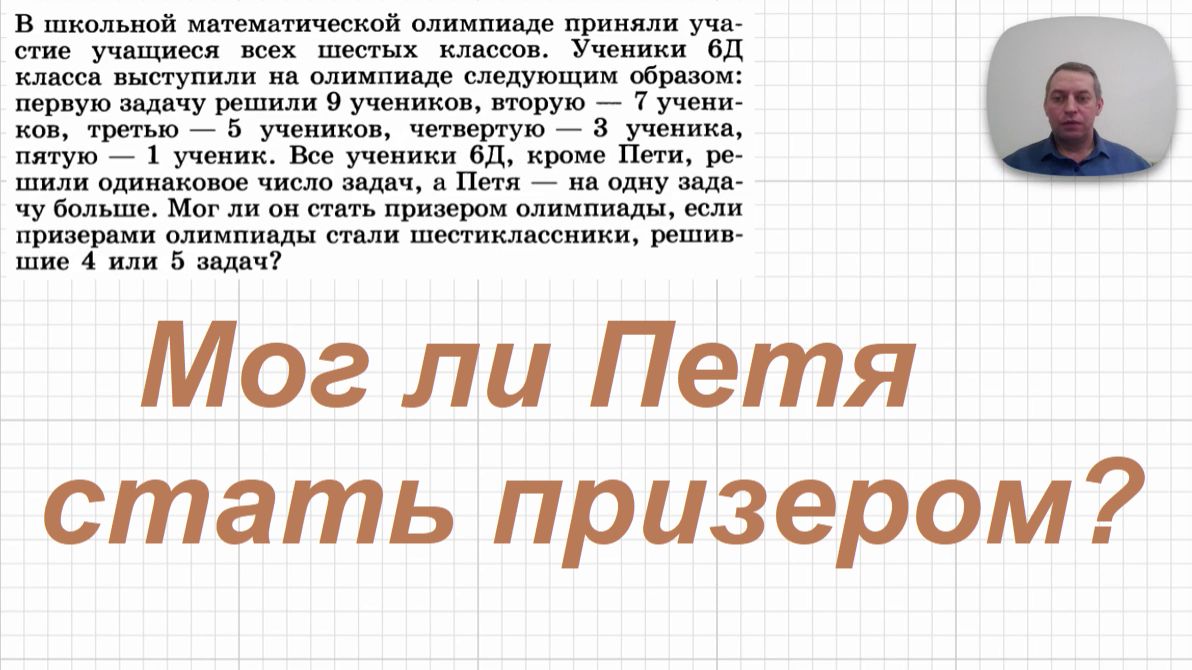 День 79-й. Олимпиадная задача про школьную математическую олимпиаду, в которой Петя выступил лучше всех, но неизвестно, стал ли призёром. ) Для понимания решения нужны знания 5-6 класса.