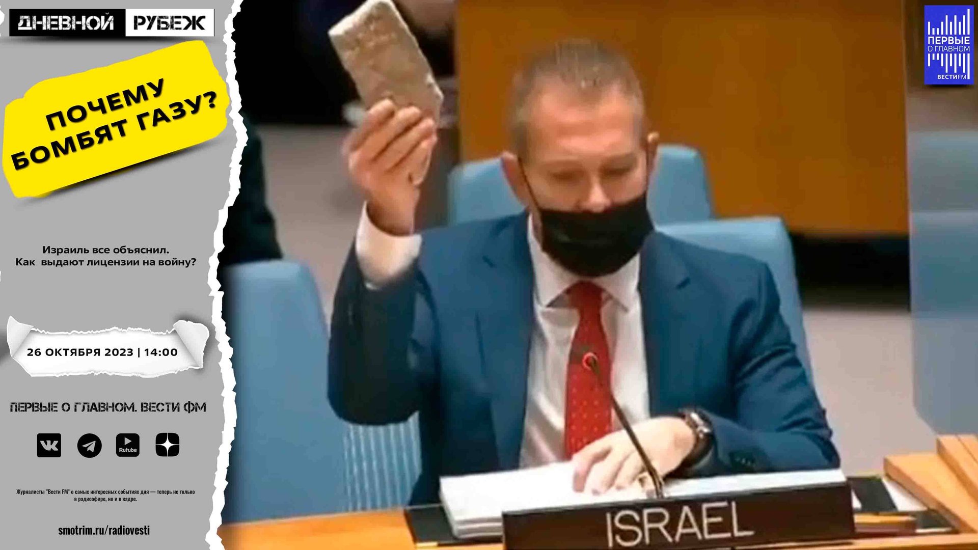 #дневнойрубеж #первыеоглавном #сво #донбасс #спецоперация #украина #израиль #хамас #секторгаза #палестина #обстрелы #цахал #байден #сша #оон #нетаньяху #небензя Израиль все объяснил. Как выдают лицензии на войну? ?Подписывайтесь на Telegram канал - Первые о главном: https://t.me/vestifmfirst ?Подписывайтесь на Rutube канал - Первые о главном: https://rutube.ru/channel/24115140/ ?Подписывайтесь на VK канал - Первые о главном: https://vk.com/first.vestifm ?Подписывайтесь на ДЗЕН канал - Первые о главном: https://zen.yandex.ru/id/5fc4960a799d1b24b5be5189 ?Подписывайтесь на Telegram канал - ВестиFM+: https://t.me/s/vestifmplus СМОТРИТЕ НАС НА ПЛОЩАДКЕ СМОТРИМ: https://smotrim.ru/channel/365