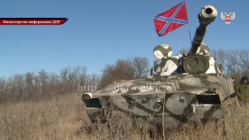 Отвод тяжёлой артиллерии ДНР с линии соприкосновения. 18.02.2015г.