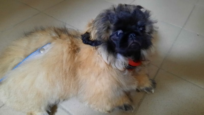 Никак не хочет наш пекинес Дендик выходить из квартиры. Решили попробовать вынести в подъезд. Боится.