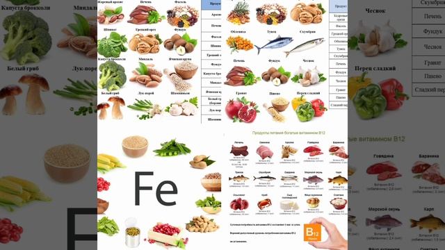 Как оказалось, нехватка всего четырех продуктов может стать причиной серьезной головной боли и раздражительности. Сверху слева продукты, в которых есть фолиевая кислота, справа вверху продукты, в которых есть витамин B6