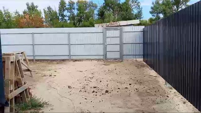 Я сделал забор 100 метров из профнастила 2 калитки и откатные ворота в рамке .