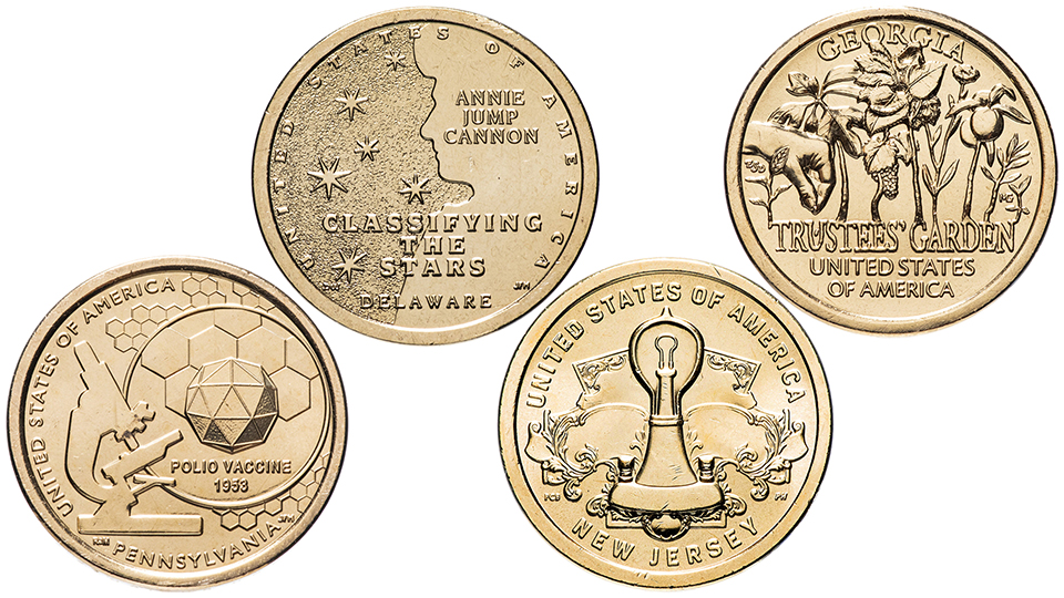 Монеты 1$ из серии Американские Инновации выпуска 2019 года.
