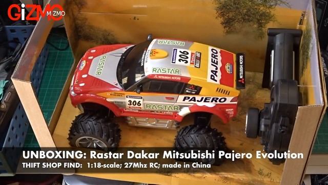 Unboxing another thrift shop find -- the Rastar Dakar Mitsubishi Pajero Evolution. A 1:18-scale, 27Mhz RC. #Pajero #GiZMOMiZMO #RC ---------- All about collectible toys. A fun hobby we all enjoy Please give the videos a THUMBS UP, click the SUBSCRIBE BUTTON and the NOTIFICATION BELL for more videos from this YouTube channel. Thanks for watching.
