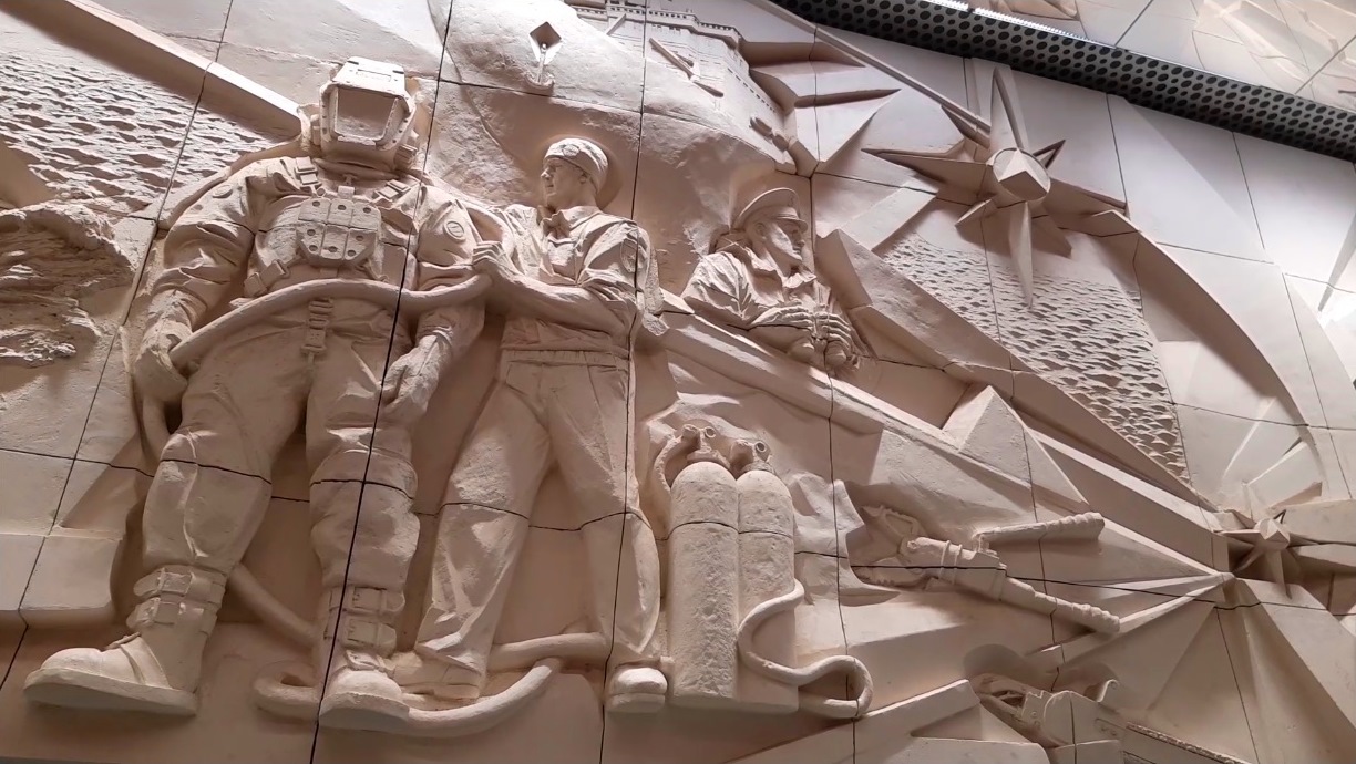 Прогуляемся по этой интересной станции Московского метро и рассмотрим ее интерьеры, посвященные деятельности МЧС России!