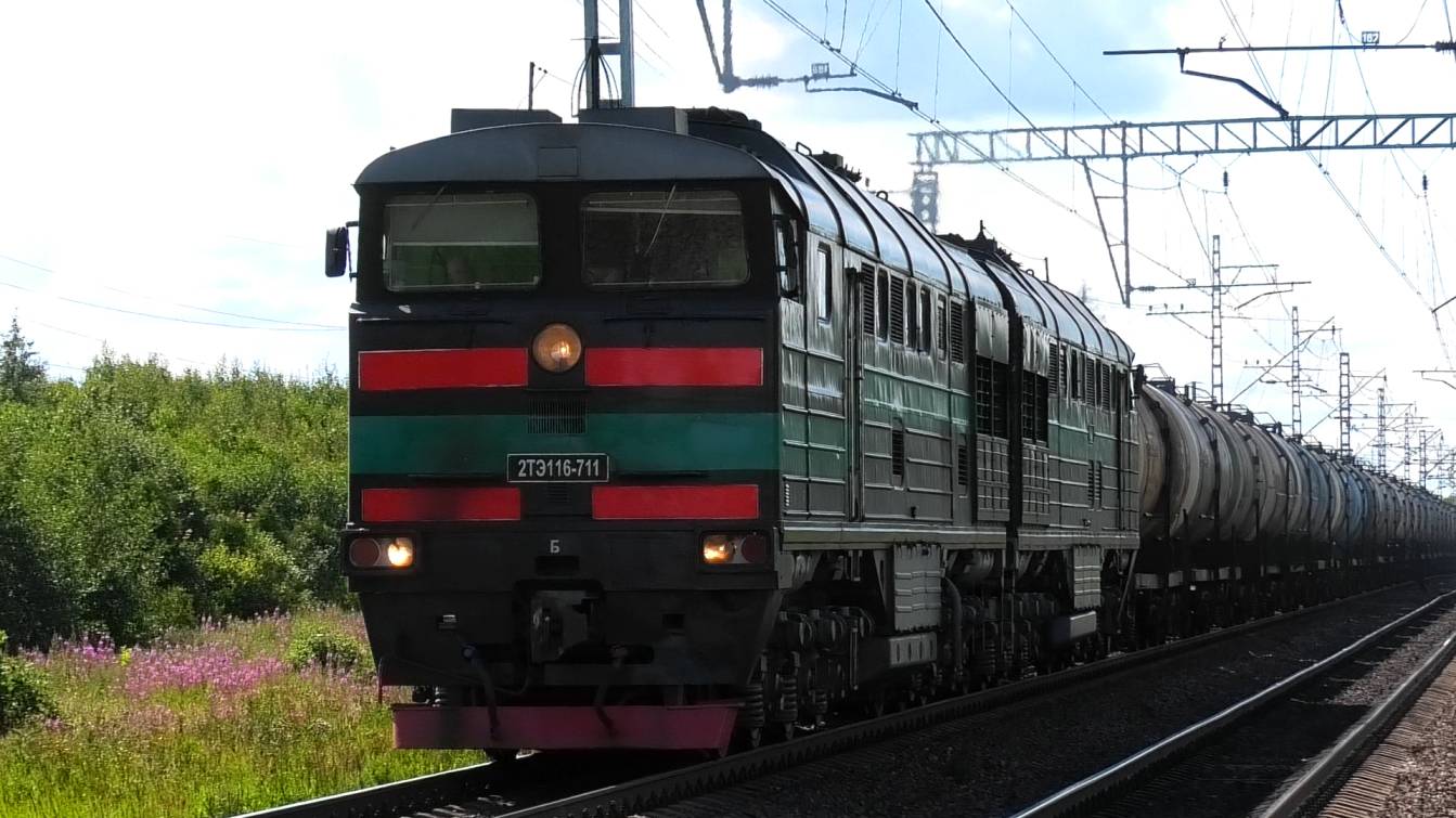 2ТЭ116-711 "БалтТрансСервис" с грузовым поездом следует через о.п. Ястребино