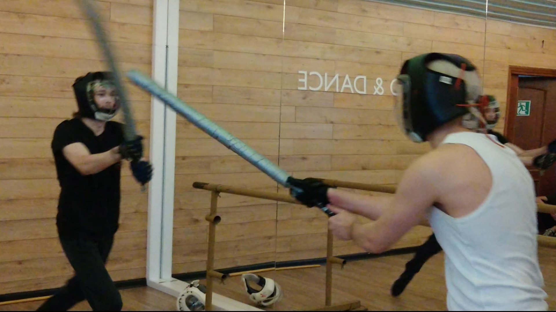 Школа японского фехтования Katana Club уроки кендзюцу - спарринг в зале на длинных мечах
