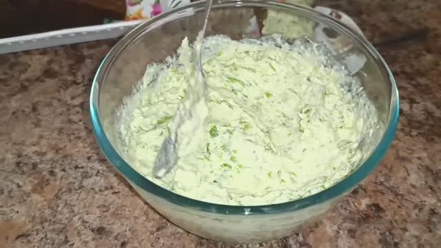 РЕЦЕПТ кабачки - 500 г; свежая зелень - кинза; яйца вареные - 2 шт.; чеснок - 1--2 зубчика; крем сыр - 200 г; соль, перец - по вкусу.