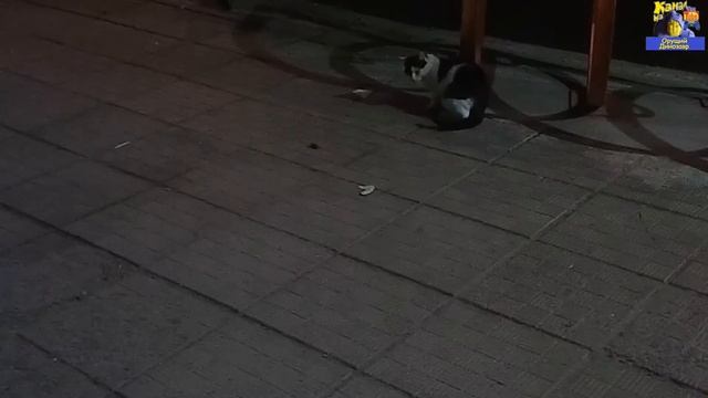 Кот и огромный жук