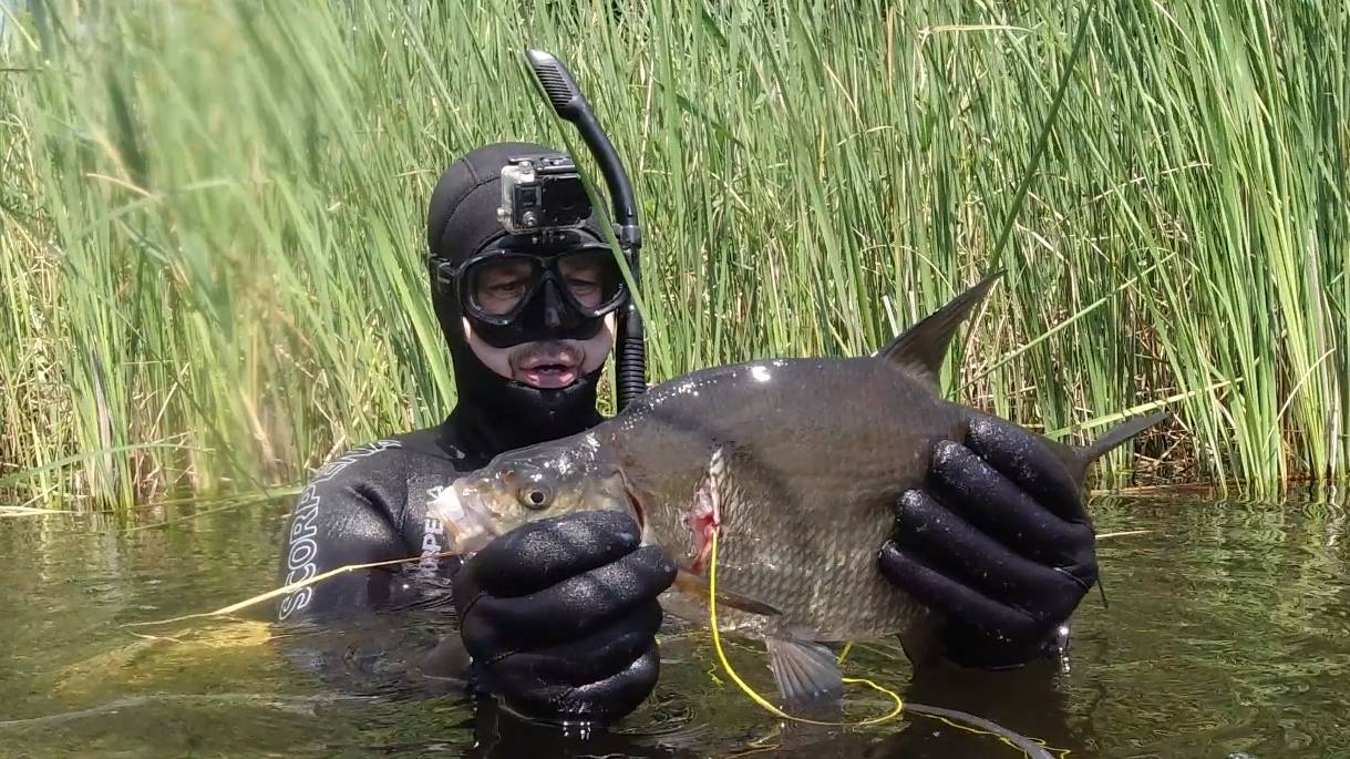 Подводная охота сплавам и в густом камыше с роллером
