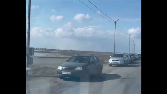 Многокилометровая очередь в Крым сейчас.