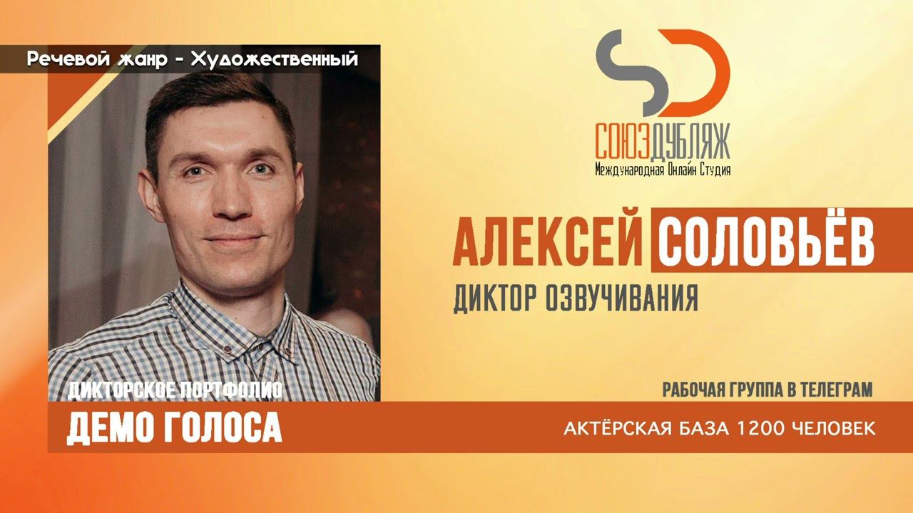 #СоюзДубляж #БазаДикторов #Озвучка ✔️Алексей Соловьёв, диктор озвучивания. Международная Онлайн-Студия "СОЮЗДУБЛЯЖ" - профессиональная озвучка и дубляж. ▪️Рабочая группа в Телеграм: https://t.me/soyuzdubliazh ▪️Контакт для связи: https://t.me/SoyuzAdmin ▪️Подпишись:https://www.youtube.com/c/SOYUZDUBLIAZH ▪️Сайт: https://www.soyuzdubliazh.com/ Лучшие голоса для вашей аудиорекламы и видеороликов. База дикторов - 5 000 человек, профессионального уровня на ENG| FR| TR| RU| ISR| AZ| UA| KZ| UZ| языках. Мужские и Женские топовые голоса для озвучки любых проектов, таких как: Рекламы, Презентации, Фильмы, Сериалы, Игры, Мультфильмы, ТВ Шоу, Аудио-видео визитки. ✔️Сотрудничая с нами вы получаете свой проект под ключ, не выходя из дома или офиса. Наша слаженная команда из лучших дикторов, актёров озвучивания, режиссёров и звукорежиссёров в кратчайшие сроки озвучат или отдублируют ваш заказ на профессиональном уровне. Образцы работ нашего портфолио вы сможете посмотреть на канале СОЮЗДУБЛЯЖ. ВНИМАНИЕ: ✔️Мы приглашаем специалистов озвучки к сотрудничеству в нашей команде. Вы можете пройти по ссылке в наш телеграм канал и связаться с Админом для обсуждения. ✔️Всем заказчикам подобных медиа проектов по озвучки и дубляжу фильмов, сериалов, документалок обращаться непосредственно к Админу Телеграм группы СОЮЗДУБЛЯЖ, пройдя по ссылке: Проходи по ссылке: https://t.me/soyuzdubliazh International Online-Studio SOYUZDUDLIAZH presents a highly professional approach in voice-over and dubbing. ▪️Our working group https://t.me/soyuzdubliazh ▪️Chief manager https://t.me/SoyuzAdmin ▪️Follow https://www.youtube.com/c/SOYUZDUDLIAZH ▪️Web: https://www.soyuzdubliazh.com/ We offer You the best Voices for your Audio commercials and Video`s. Our Database contains over 5 000 voices of native speakers and high-class foreign language specialists in ENG| FR| TR| RU| ISR| AZ| UA| KZ| UZ|. Male & Female top level voices for all the variety of dubbing projects such as commercials, presentations, movies, TV-series, video and computer games, cartoons, TV-shows, audio & video portfolio’s – all in one place. As your business partner we guarantee a turn-key project without you leaving your house or office. Our target is to make sure that the dubbing of your project is made as quick as possible by a well-coordinated and professional team of the best speakers, film and sound directors. To whom it may concern! We invite dubbing specialists to join our team. Please contact our manager on Telegram https://t.me/soyuzdubliazh