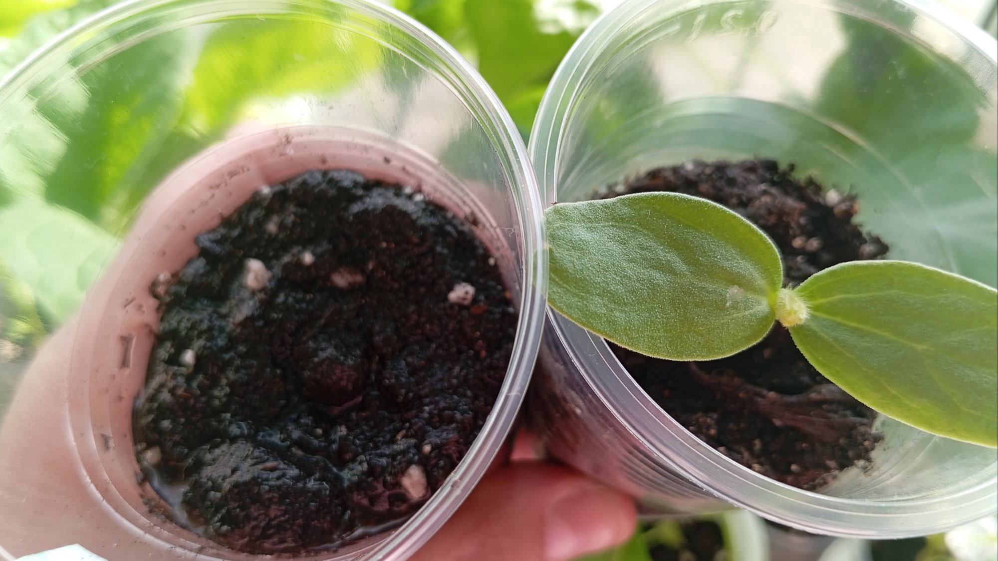 Результаты посева дыни из своих семян и магазиных, арбуза, огурцов. Посеяла колеусы. Рассада ещё дома.