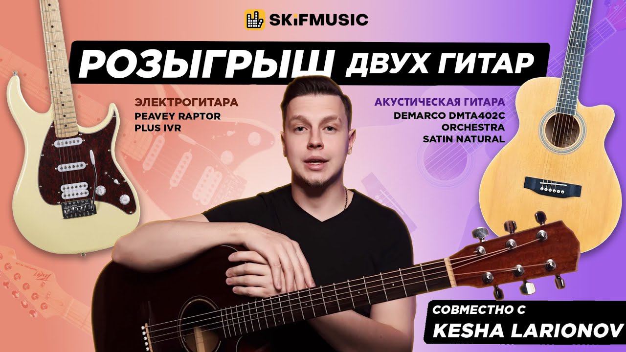 С 1 апреля вас, но это не пранк! В теплом апреле мы разыгрываем сразу две гитары совместно с блогером Кешей Ларионовым: акустическую гитару DeMarco DMTA402C и электрогитару PEAVEY Raptor Plus Black. Как стать участником? 1) Заходите на сайт skifmusic.ru или приходите в живые магазины; 2) С 1 по 30 апреля 2024 года делайте заказ на сумму от 2000 рублей; 3) Номер заказа — это номер вашего счастливого лотерейного билета; 4) 15 мая 2024 года мы рандомно с помощью программы выберем счастливчика и подарим крутую гитару! Важно! 1. На одного человека может быть оформлено любое количество заказов и каждый из них будет принимать участие в лотерее; 2. Гитары будут отправлены за наш счет победителю в любую точку России; 3. Розыгрыш гитар будет проходить в прямом эфире 15 мая 2024 года в Вконтакте, Ютубе, победителей выберем с помощью рандомайзера! SKIFMUSIC.RU - это живые музыкальные шоурумы в центре Москвы, Санкт-Петербурга и Самары, Казани, Магнитогорска, Томска и других городов, а также более 110.000 товаров на сайте. Мы собрали огромную коллекцию крутых гитар: начиная от редких винтажных экземпляров из США и Европы, заканчивая новыми крутыми инструментами! Каждый шоурум оборудован гитарной мастерской с профессиональным мастером: на все инструменты действует пожизненная гарантия, а доставка осуществляется в любую точку мира!