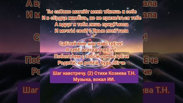 Песня "шаг навстречу" создана в тандеме с ИИ. Стихи Татьяна Козеева. Музыка, вокал ИИ.