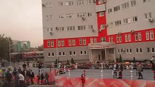 Посадка и начало поездки по экспериментальному кольцу ВНИИЖТ в Щербинке во время железнодорожного салона ЭКСПО-1520 на новом двухэтажном аэроэкспрессе ЭШ2 "Штадлер".